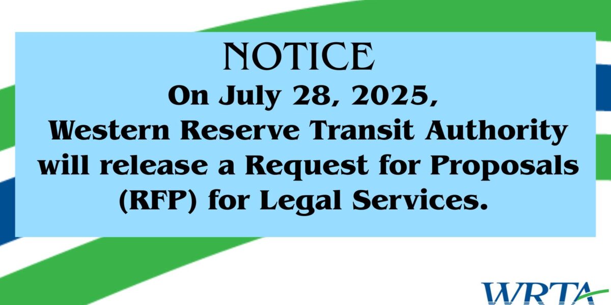 Notice is hereby given that Western Reserve Transit Authority (WRTA) is soliciting Proposals for Legal Services.