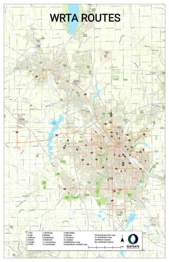 WRTA provides fixed route bus service on 24 scheduled bus routes in Mahoning County and the City of Warren.